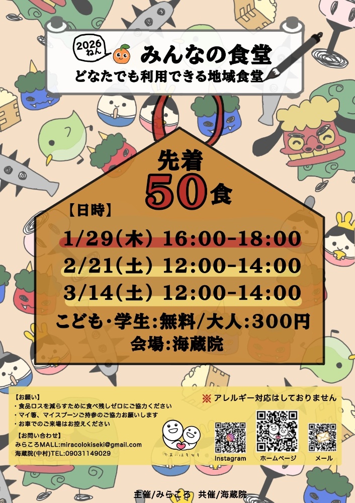 海蔵院さまのスタッフとみらころがコラボして『みんなの食堂』を開催します。